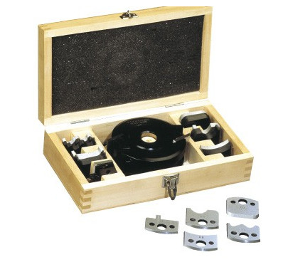 Cassete de 80 x 40 x 20 mm eje, marca “Lombarte”. Se suministra con siete juegos de cuchillas perfiladas.