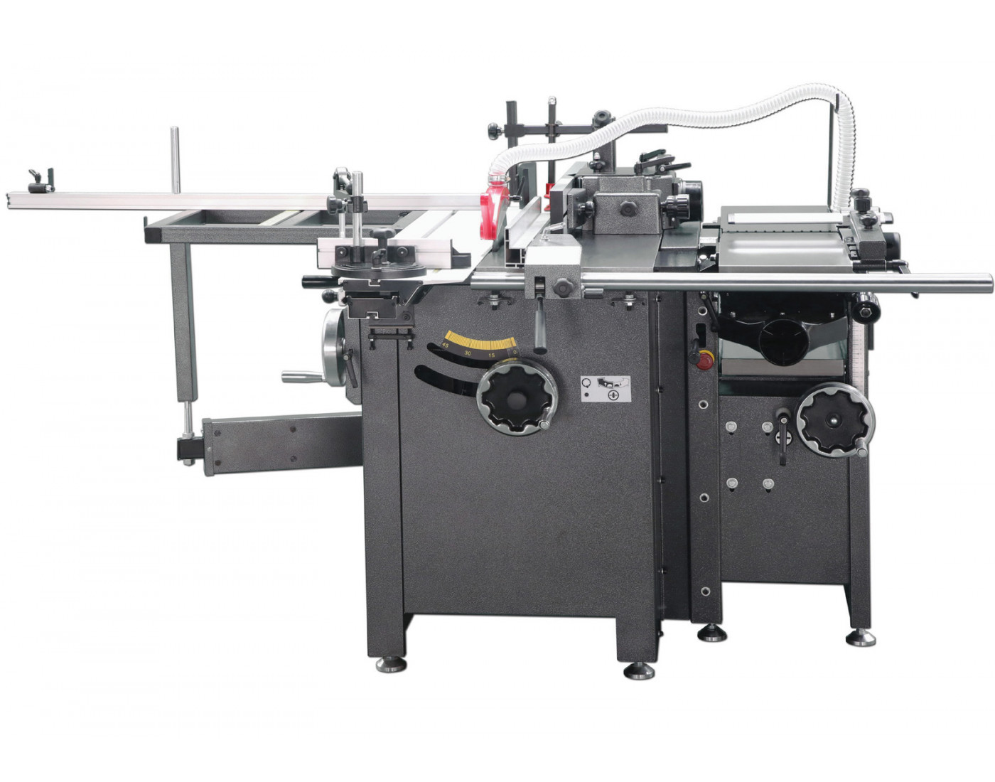 La C4-260-QP reúne en un solo equipo cinco funciones esenciales: cepilladora, regruesadora, tupí-fresadora, sierra circular inclinable y escuadradora con carro de aluminio.