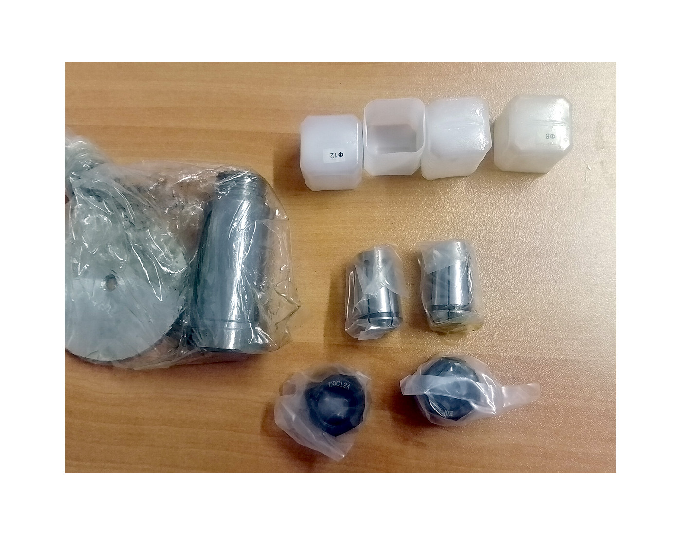 - Tupí con eje intercambiable de 30mm y otro para fresolines con pinzas de mango 8 y 12..