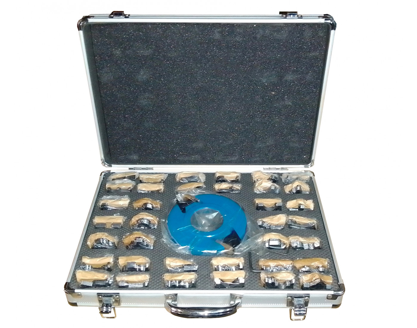 Cassete com eixo 78 x 40 x 30 mm, marca “Flury”. Fornecido com sete conjuntos de lâminas perfiladas.?