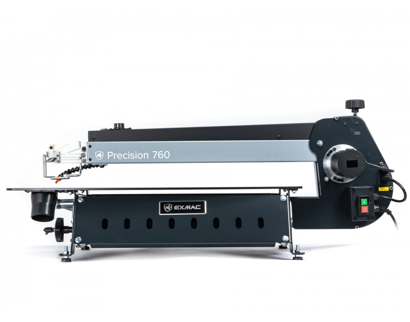 A PRECISION 760 é a maior máquina entre as serras verticais EXMAC. Oferece um passo longitudinal particularmente amplo e tem um peso relativamente elevado, o que permite a produção de peças de grandes dimensões. O PRECISION 760 é o modelo de topo da EXMAC e é adequado para todos os utilizadores, desde principiantes e DIYers a carpinteiros profissionais.