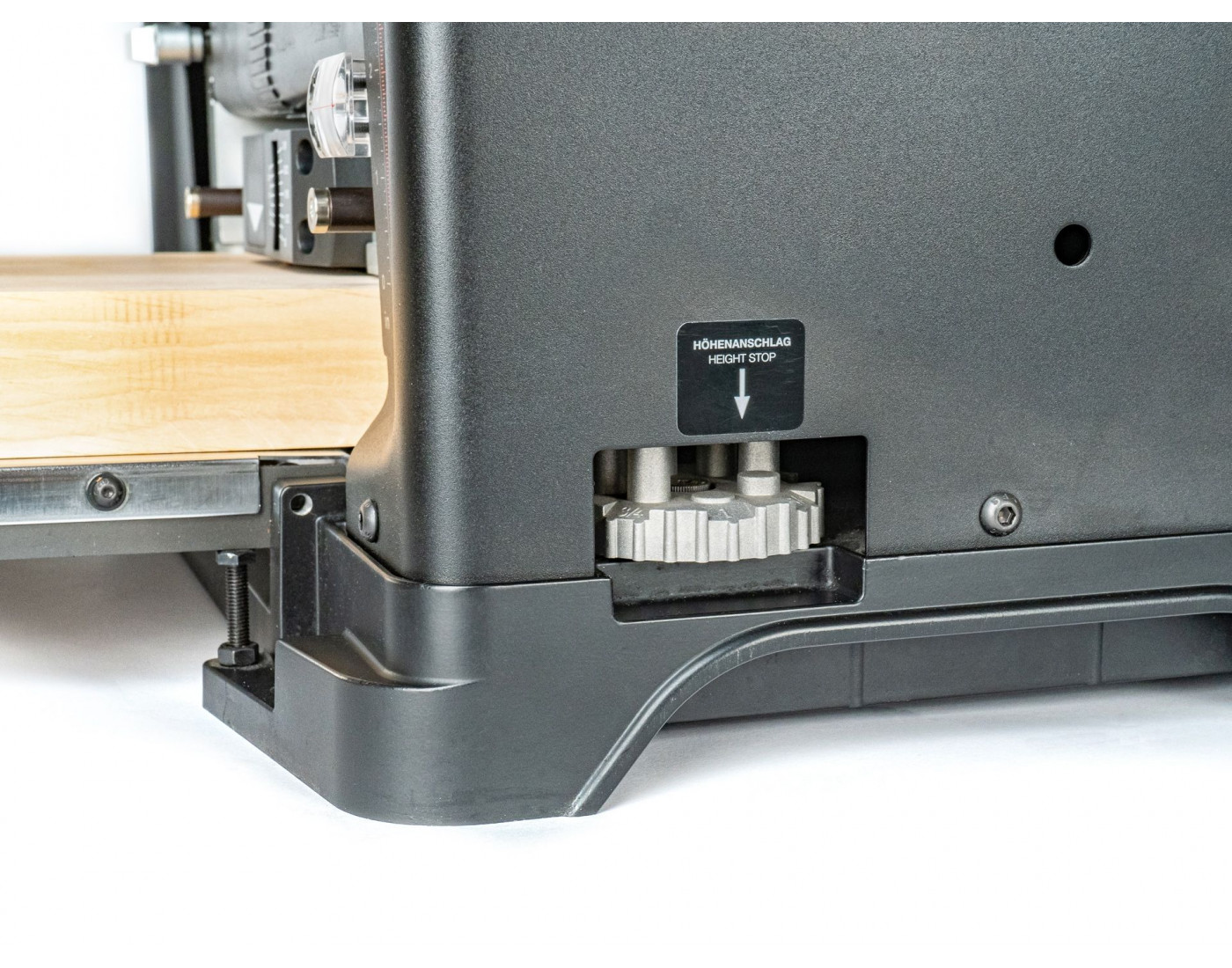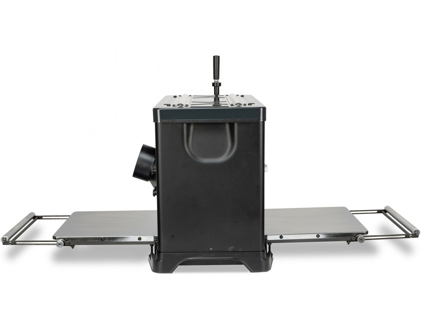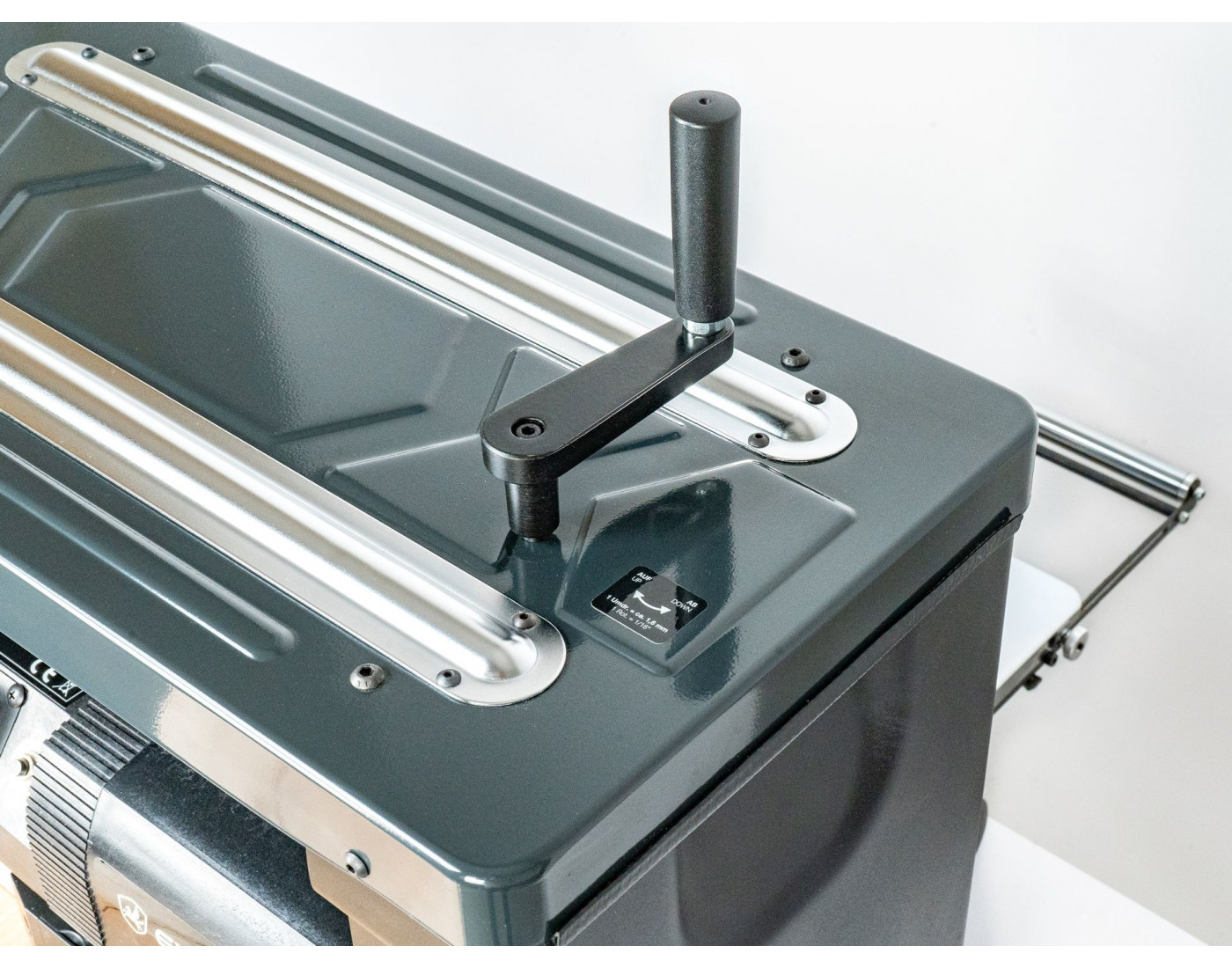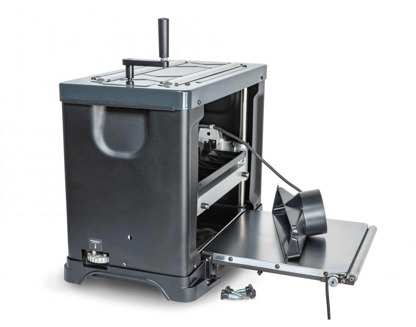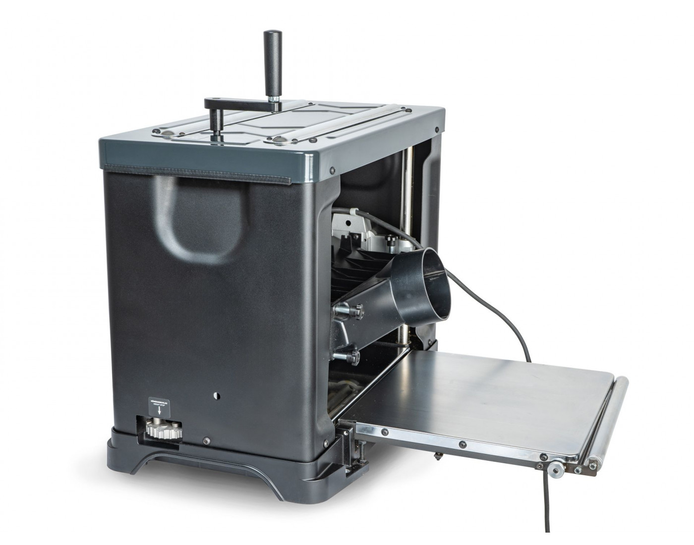 As mesas reguláveis com extensões integradas rebatíveis facilitam o trabalho com peças longas sem ocupar espaço adicional. Graças às pegas de transporte, a máquina pode ser armazenada e deslocada facilmente. O corpo metálico sólido garante estabilidade dimensional e longa vida útil.