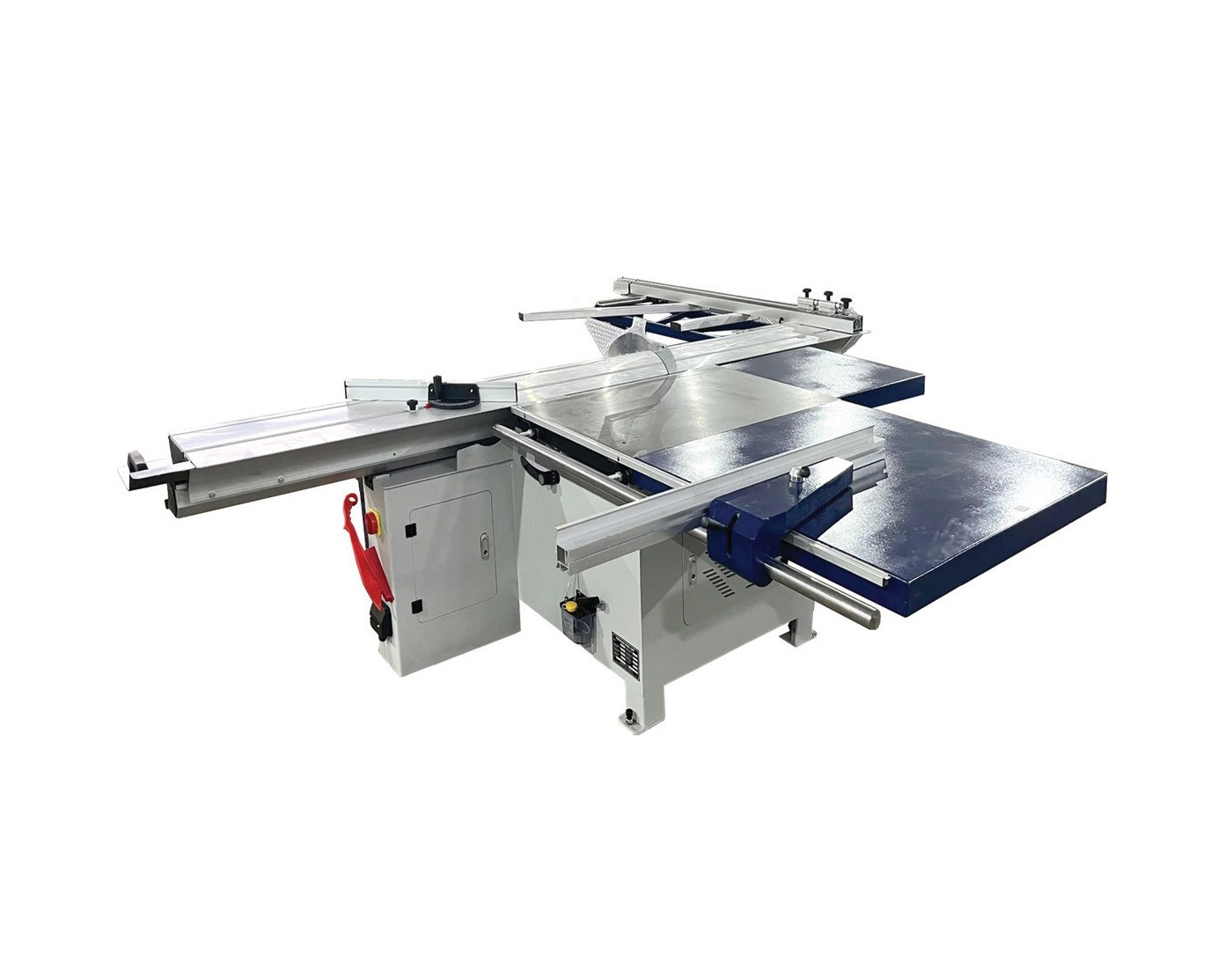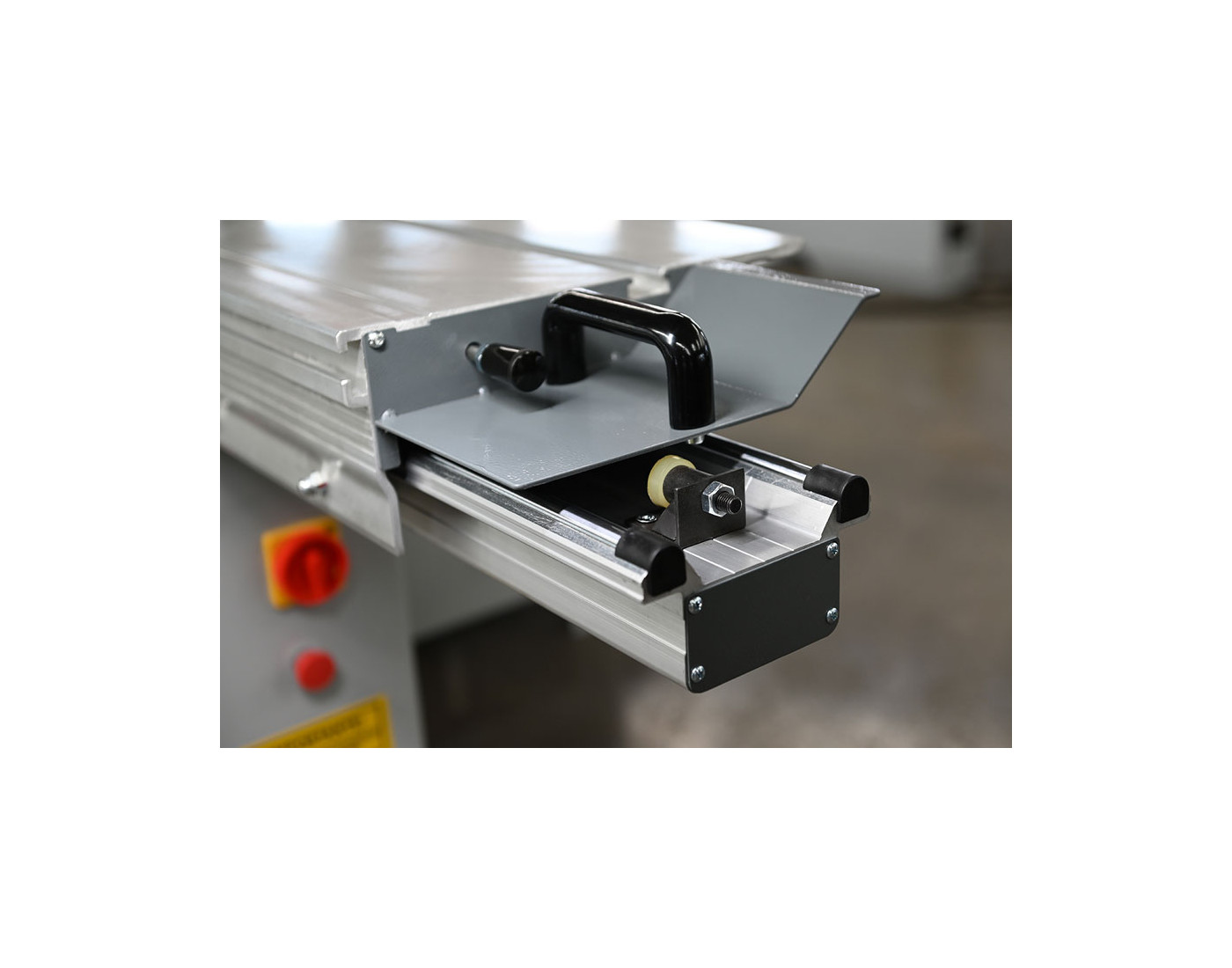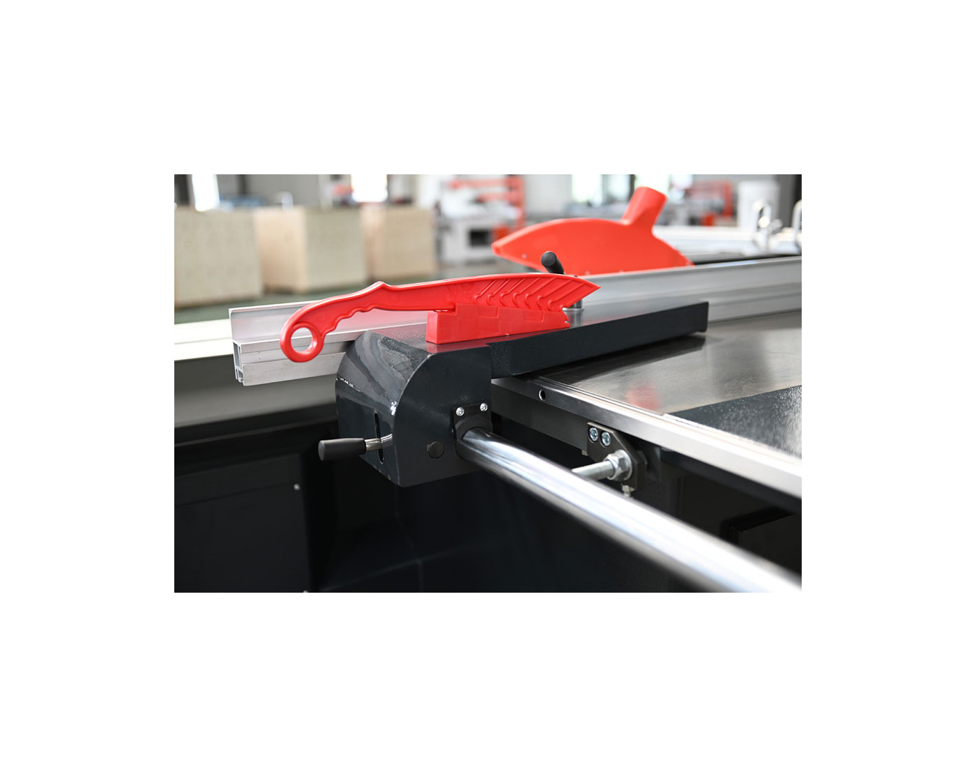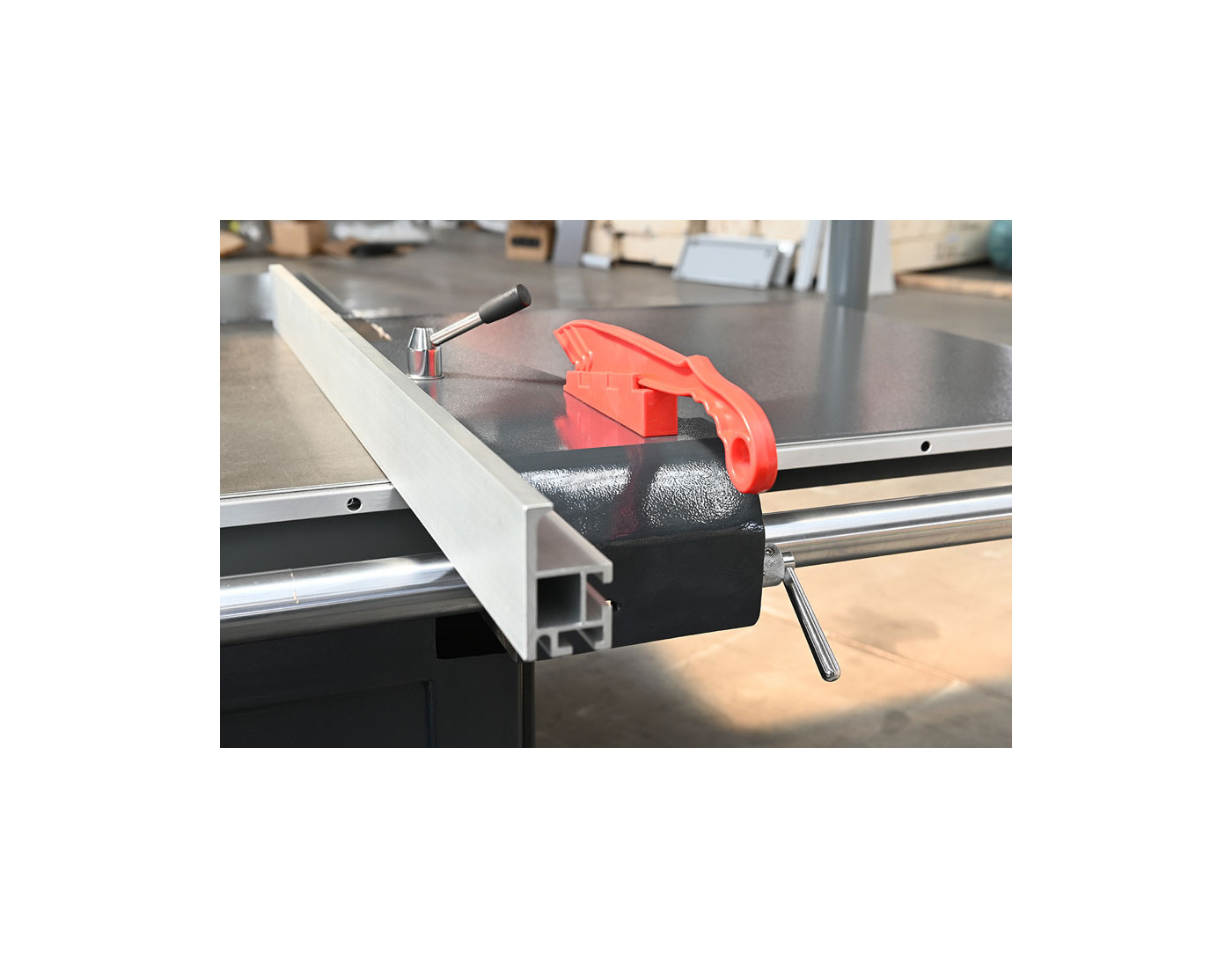 Serra circular de esquadria concebida para uso industrial intensivo, equipada com carro em alumínio extrudido de alta qualidade, com curso de 3.200 mm. Permite cortar painéis de até 3.200 x 1.250 mm com estabilidade e precisão, sem necessidade de apoios adicionais.
