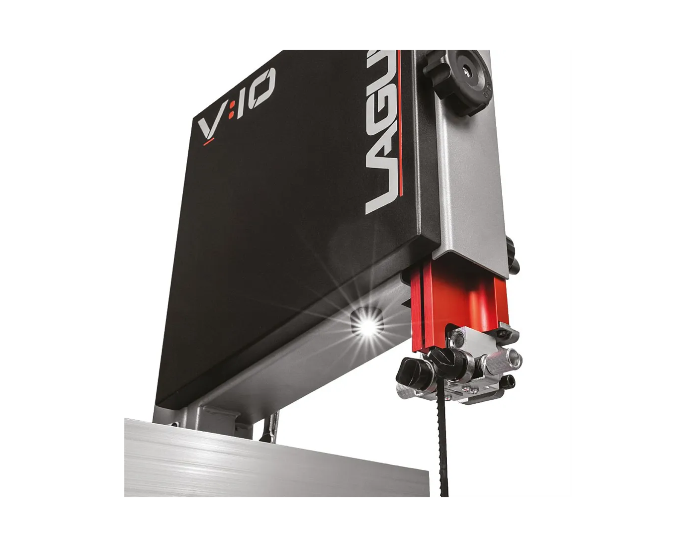 A Laguna V10 é uma serra de fita compacta de 10” que combina precisão, potência e componentes de nível profissional num formato reduzido. Está equipada com volantes e mesa em ferro fundido, motor de indução de 750 W e duas velocidades de corte, permitindo cortes precisos com uma altura máxima de corte de 146 mm.